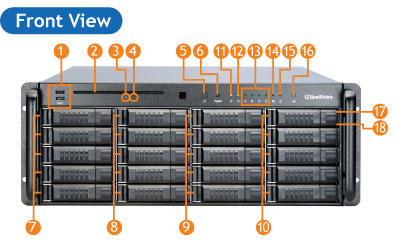 The GV-Hot Swap Recording Server System is a video streaming server supported by a powerful data storage capacity and designed for large-scale video surveillance deployments. The 20 hot-swappable SATA hard disks can store more than 40 terabytes of recorded data depending on the HDD size.